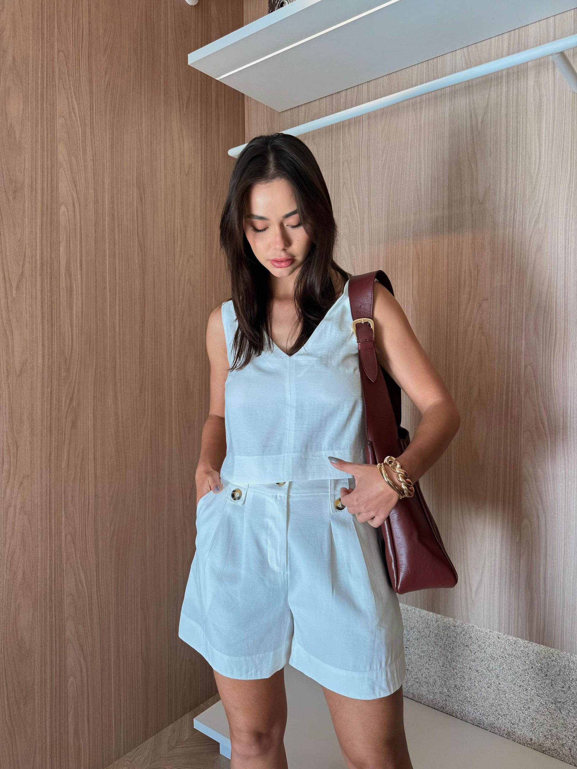 Decote em V;