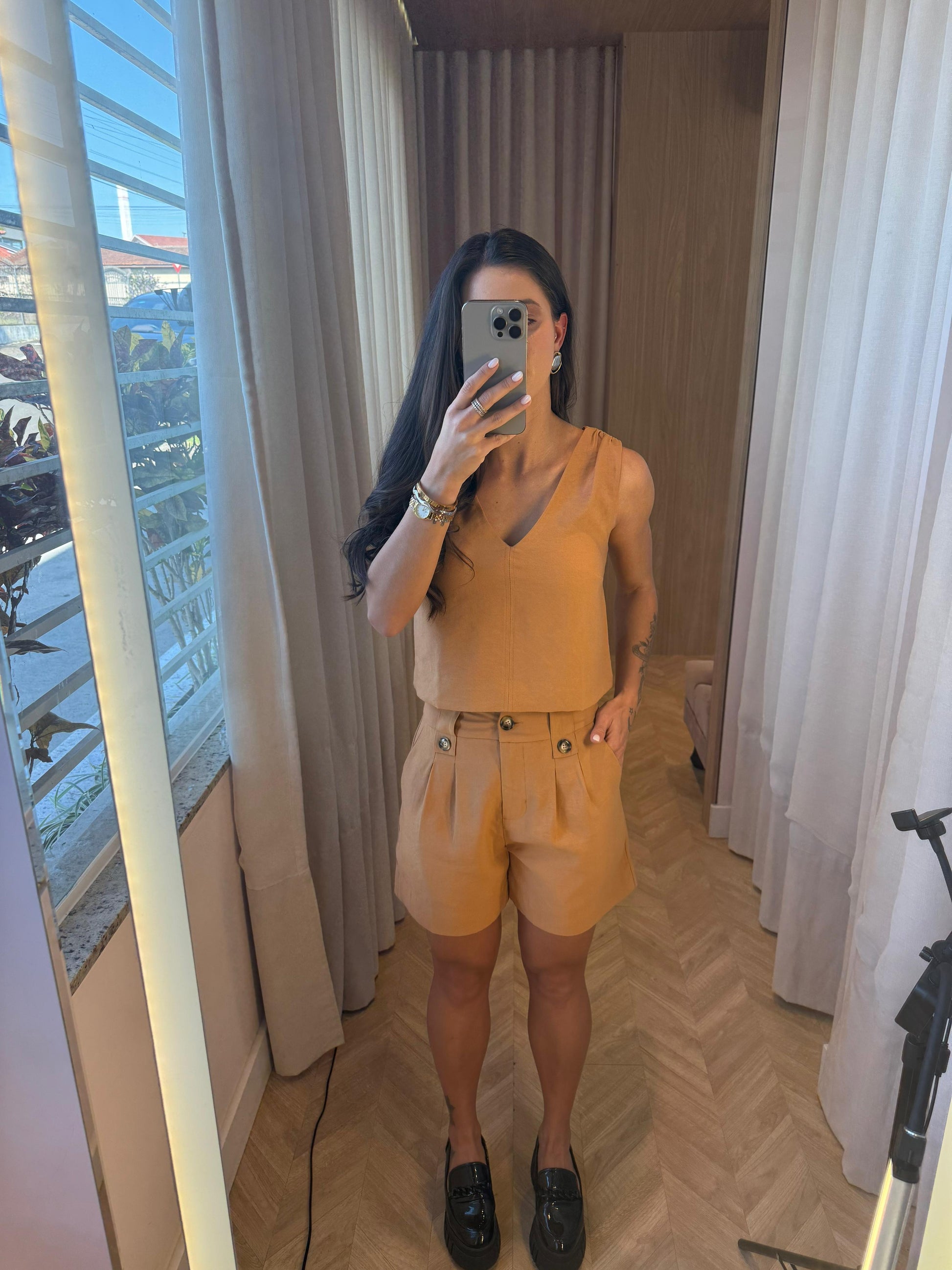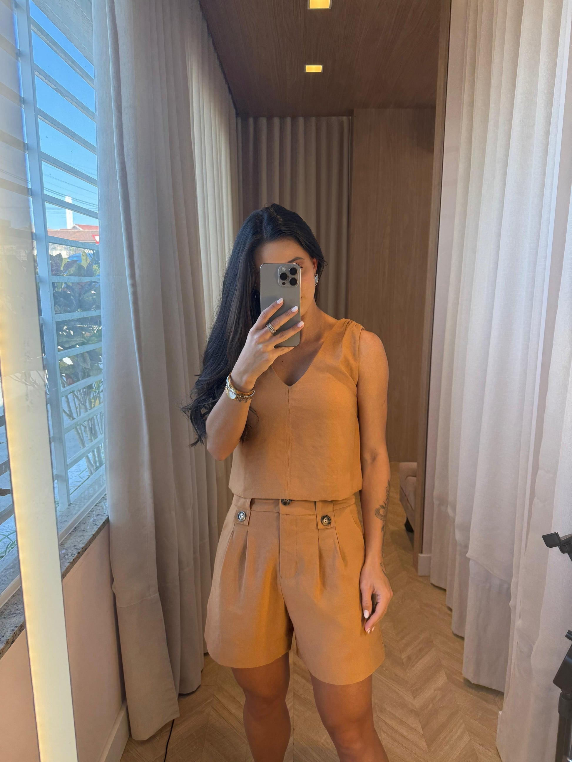 Comprimento na altura do quadril.