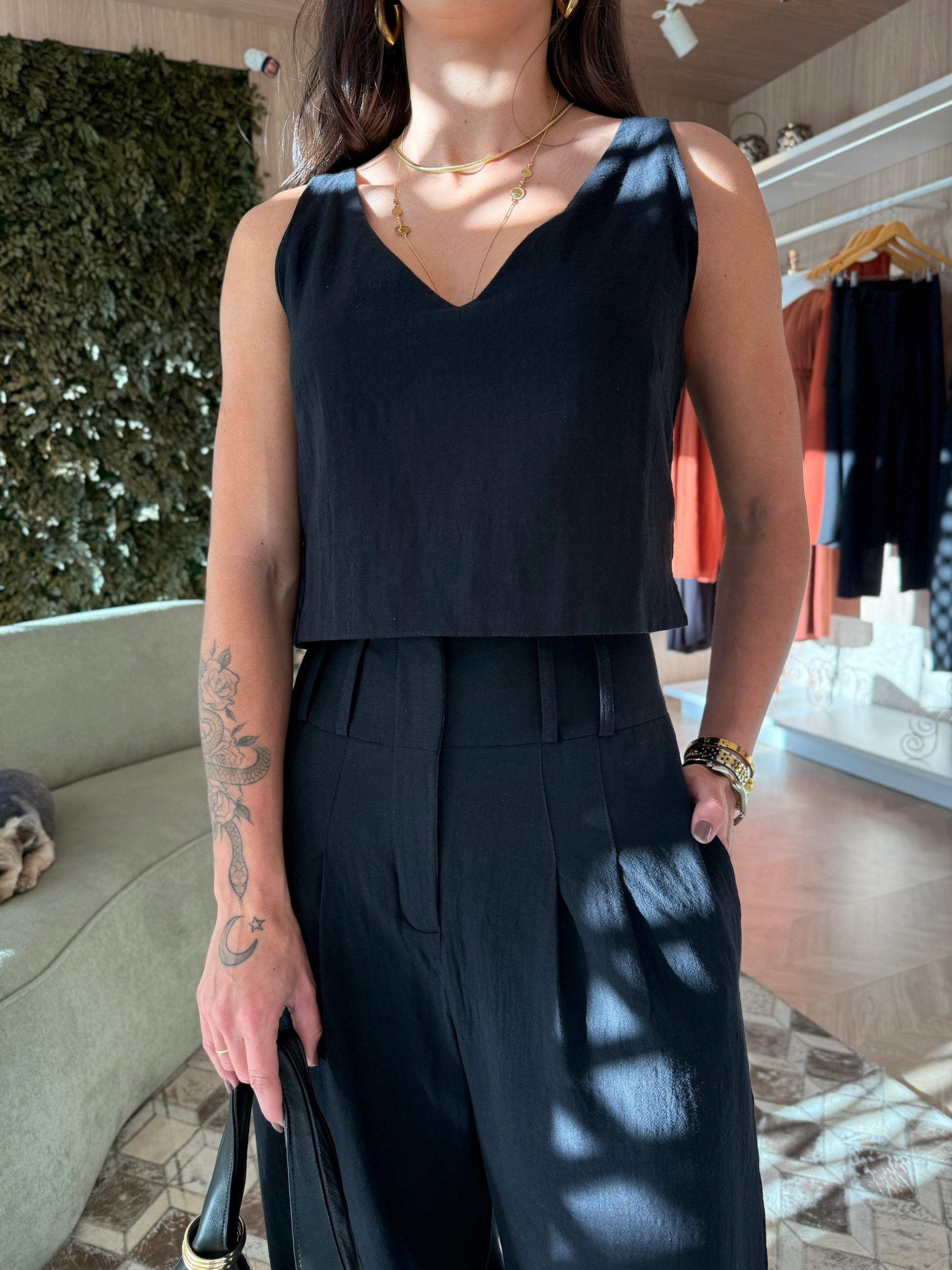 Regata cropped decote V;
