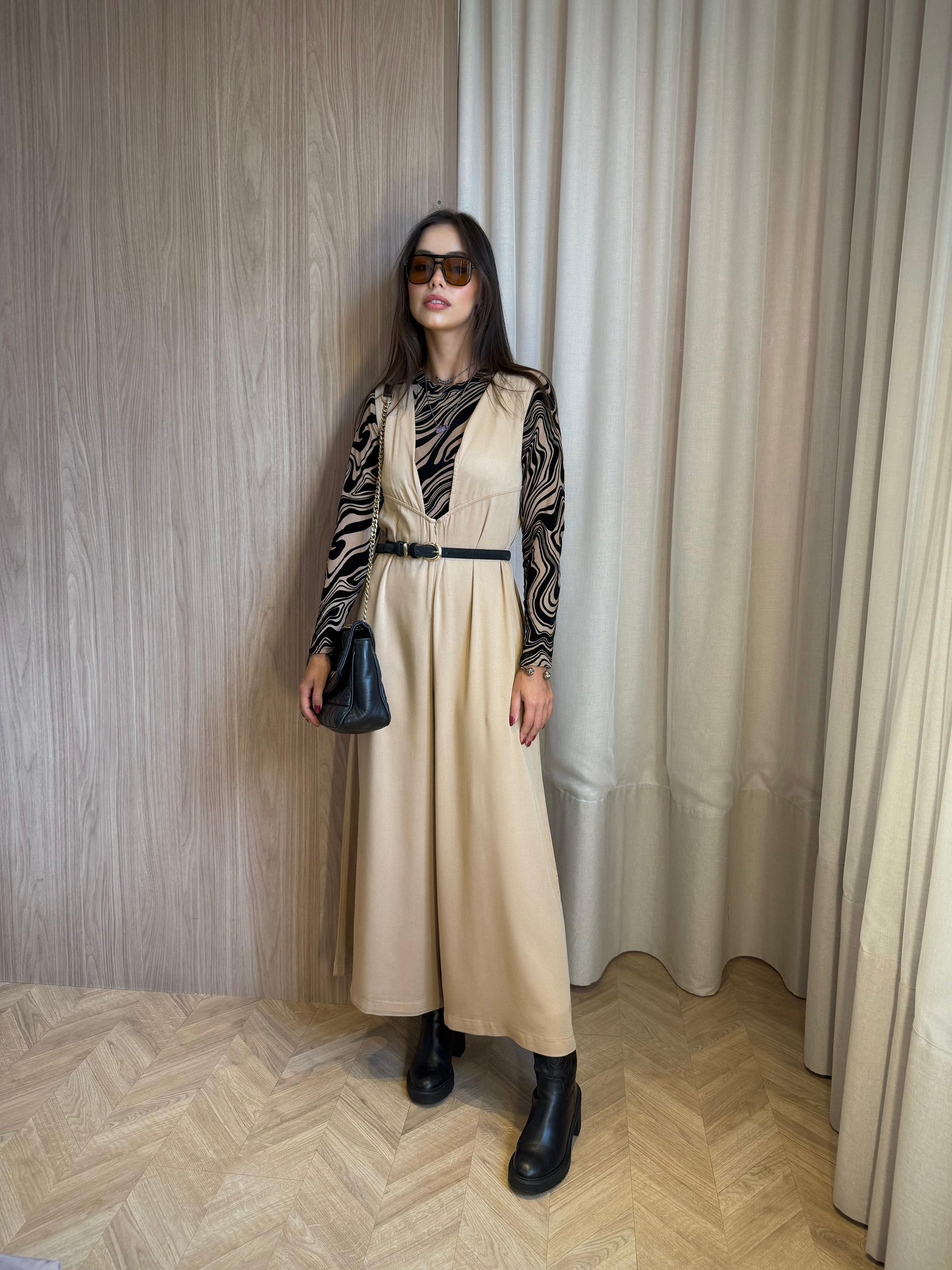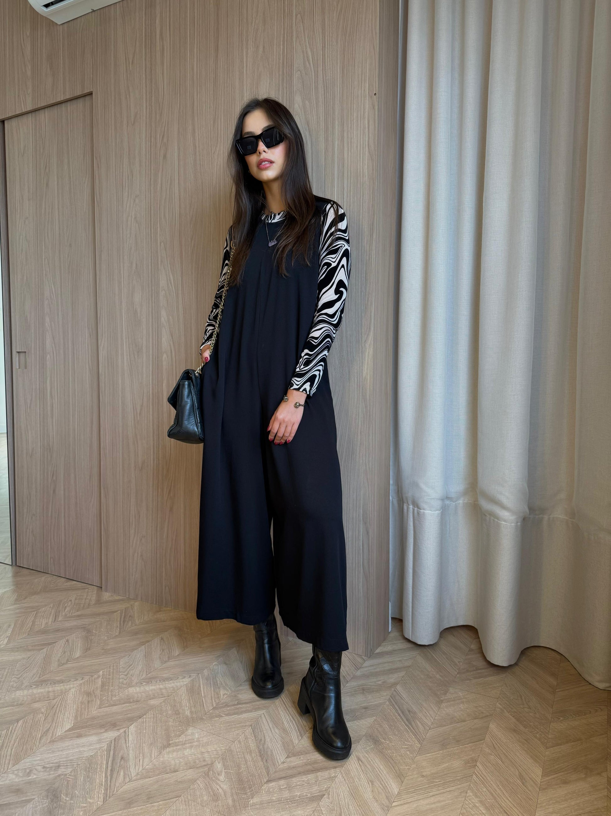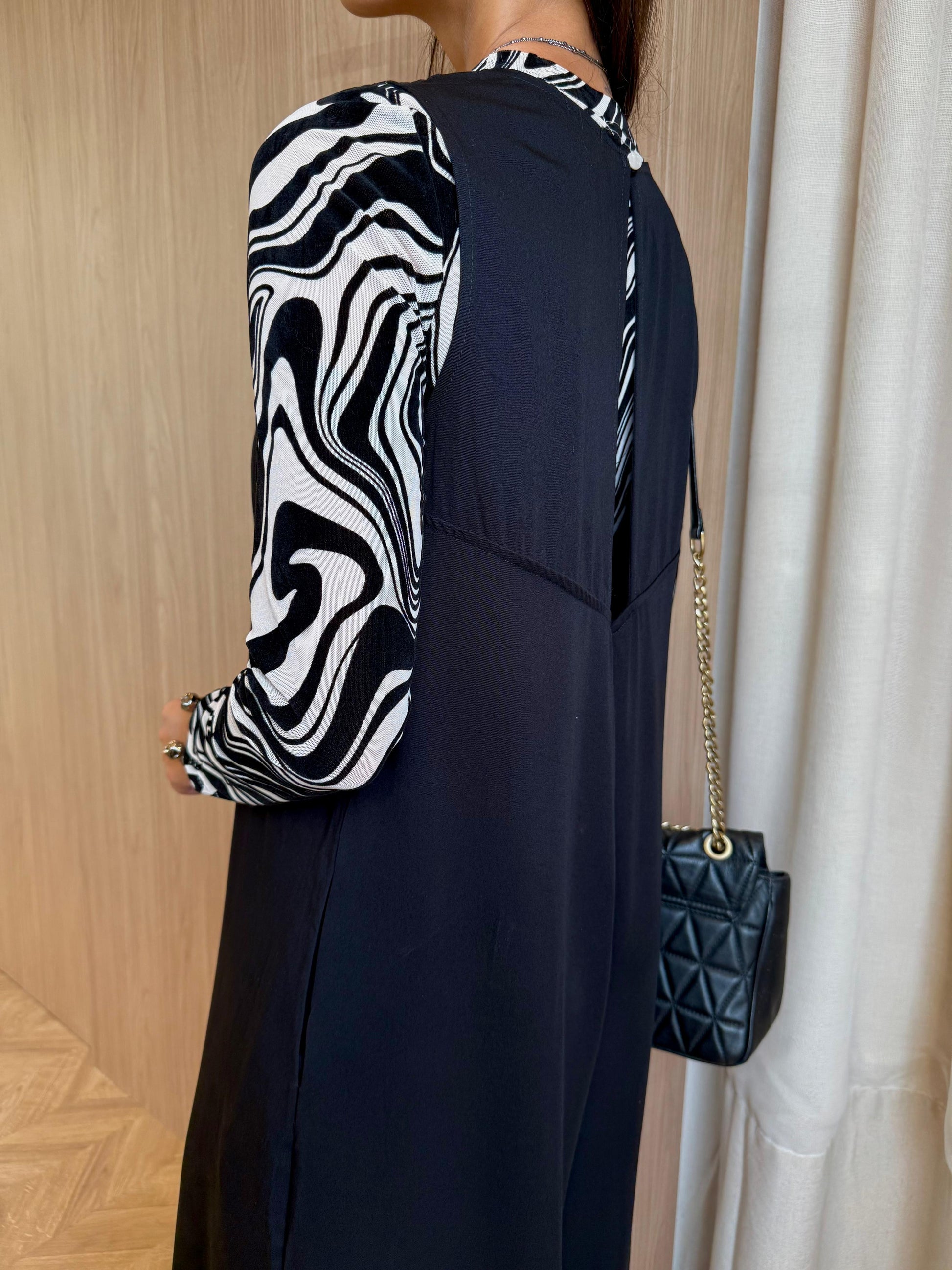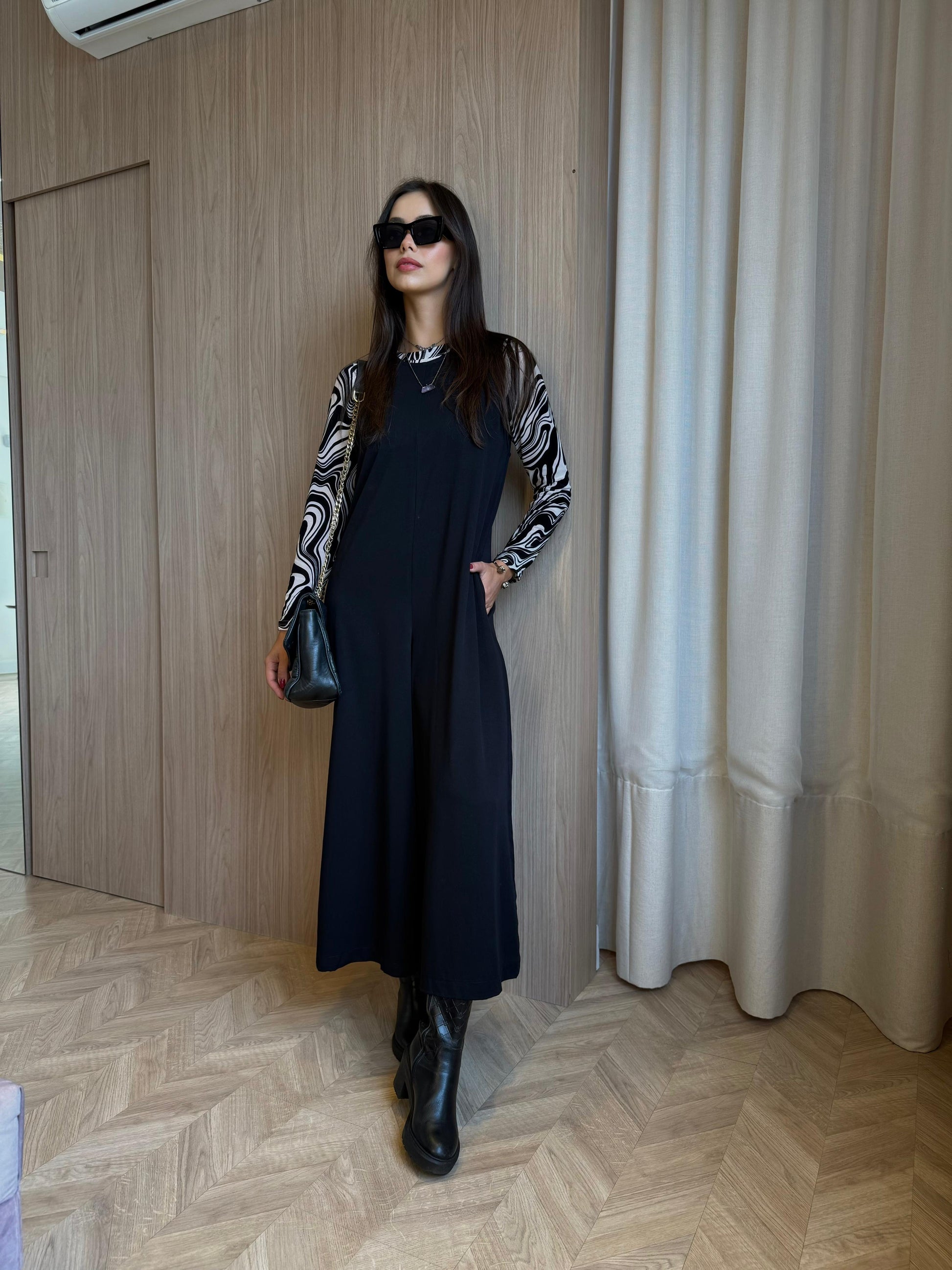 Possui fechamento posterior em zíper invisível e também por abotoadura
