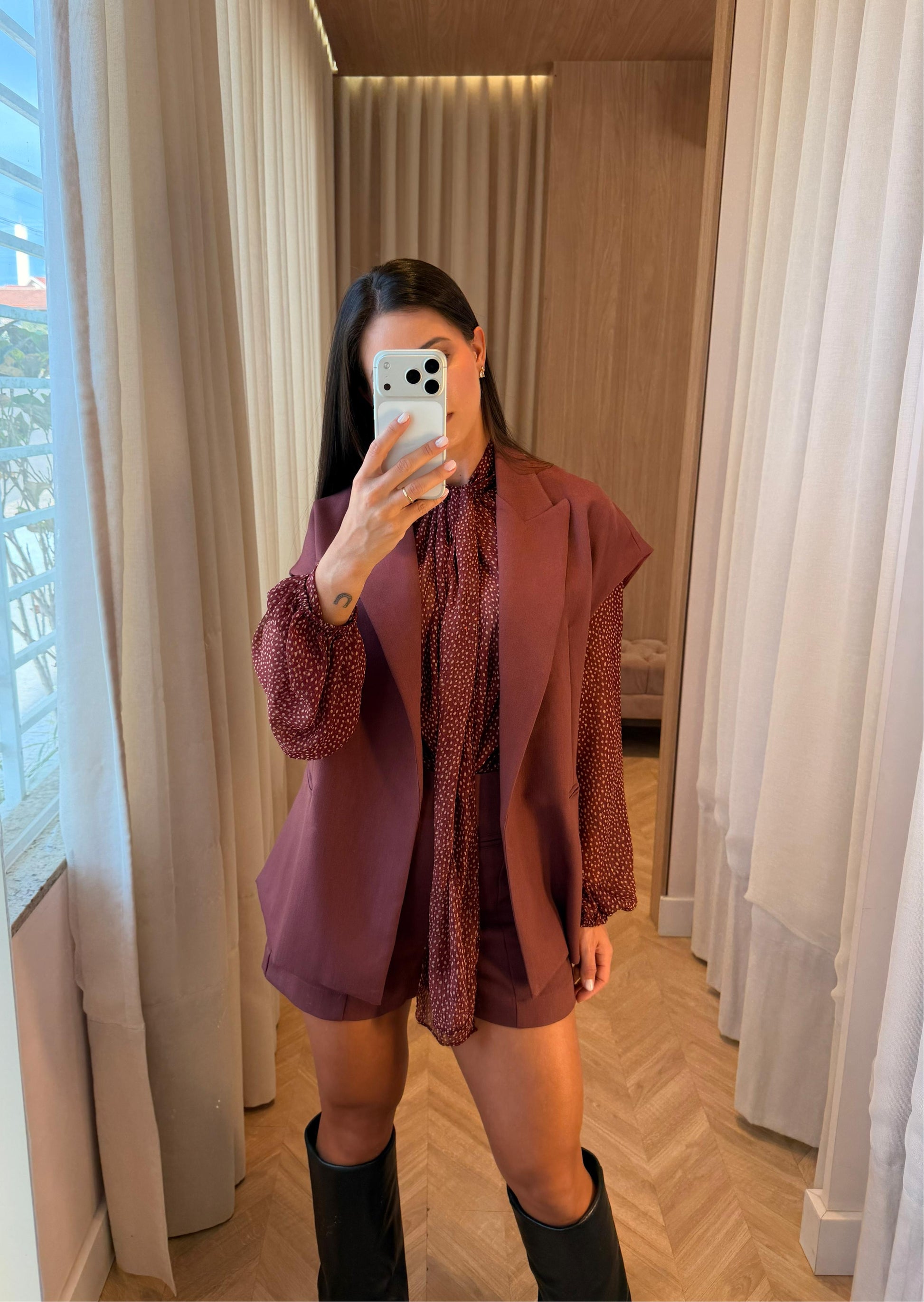 Composição:77% poliéster, 19% viscose e 4% elastano