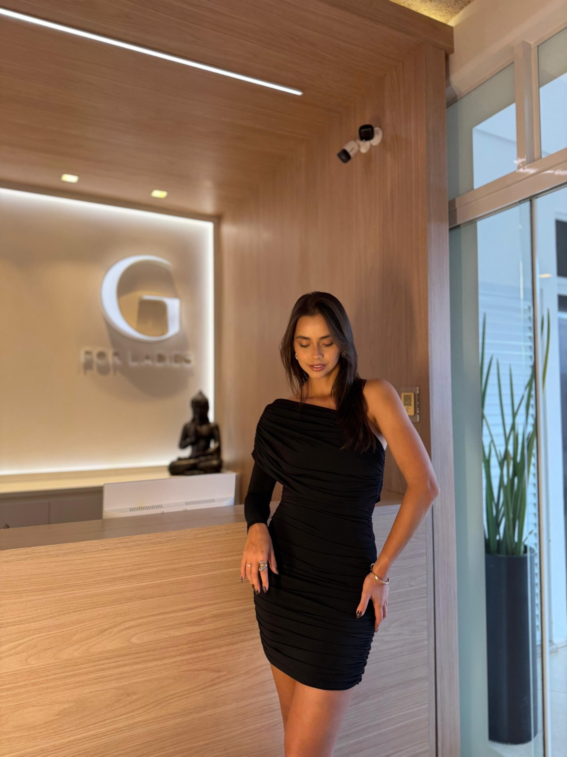 Vestido curto, drapeado